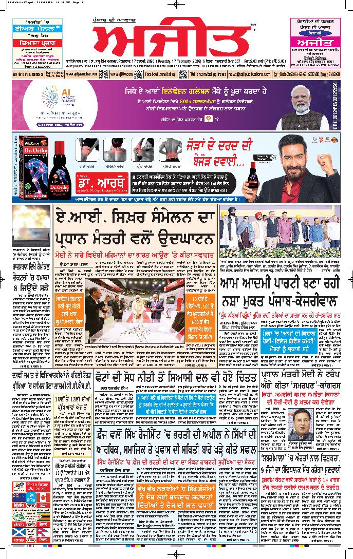 ਅਜੀਤ' ਖ਼ਬਰਾਂ, 16 ਫਰਵਰੀ 2026
