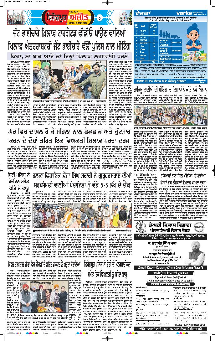 ਚੰਡੀਗੜ੍ਹ/ਤਰਨ ਤਾਰਨ, 18 ਫਰਵਰੀ- ਮੁੱਖ ਮੰਤਰੀ ਭਗਵੰਤ ਸਿੰਘ ਮਾਨ ਵਲੋਂ ਹਰਬਰਿੰਦਰ ਸਿੰਘ ਦੇ ਕਤਲ ਦੀ ਜਾਂਚ ਦਾ ਨਿੱਜੀ ਤੌਰ ’ਤੇ ਜਾਇਜ਼ਾ ਲੈਣ ਪਿੱਛੋਂ ਡਾਇਰੈਕਟਰ ਜਨਰਲ ਆਫ਼ ਪੁਲਿਸ (ਡੀ.ਜੀ.ਪੀ.) ਪੰਜਾਬ ਗੌਰਵ ...
