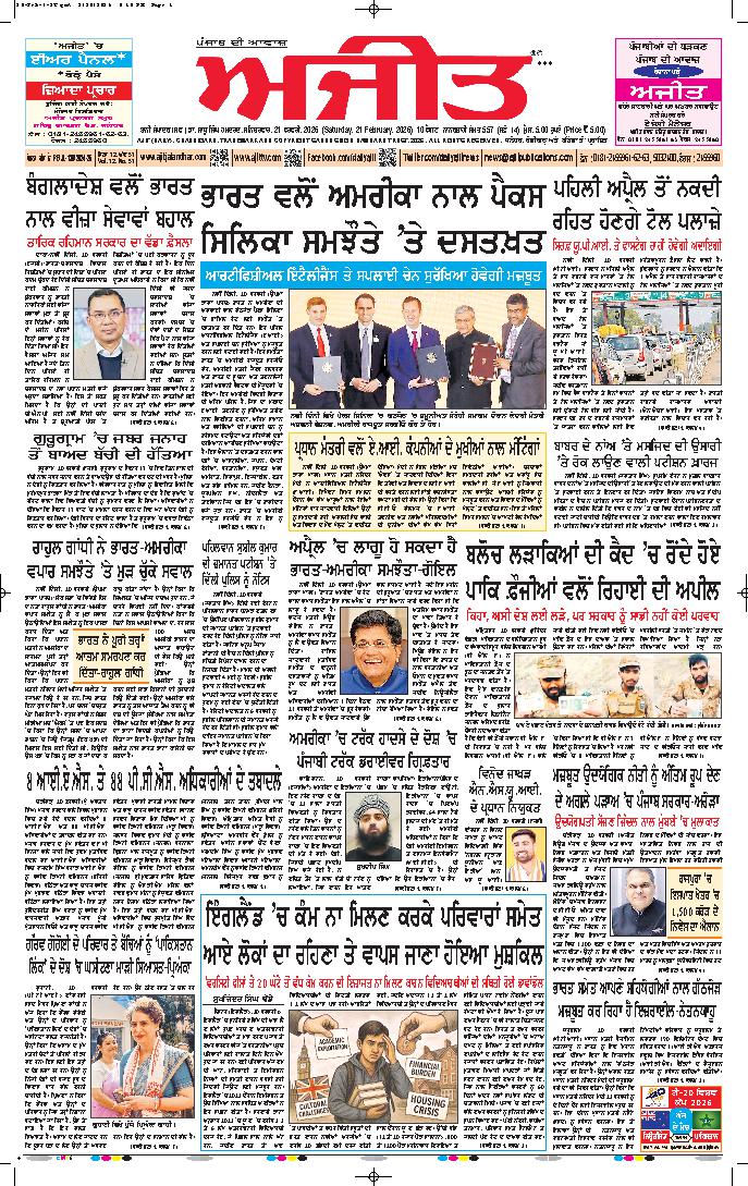 ਅਜੀਤ' ਖ਼ਬਰਾਂ, 20 ਫਰਵਰੀ 2026