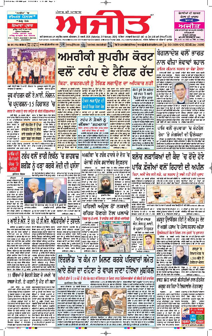 ਅਜੀਤ' ਖ਼ਬਰਾਂ, 20 ਫਰਵਰੀ 2026