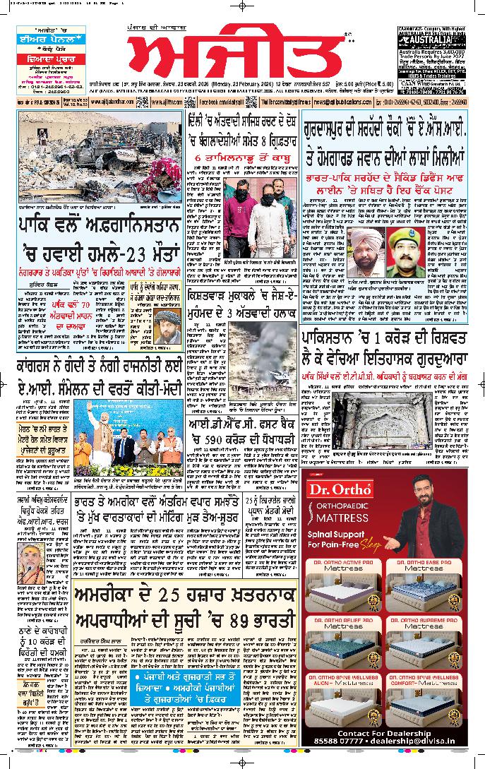 ਅਜੀਤ' ਖ਼ਬਰਾਂ, 22 ਫਰਵਰੀ 2026