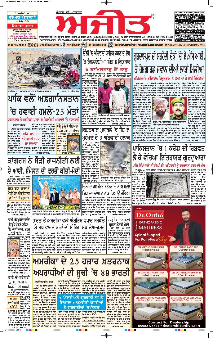 ਅਜੀਤ' ਖ਼ਬਰਾਂ, 22 ਫਰਵਰੀ 2026