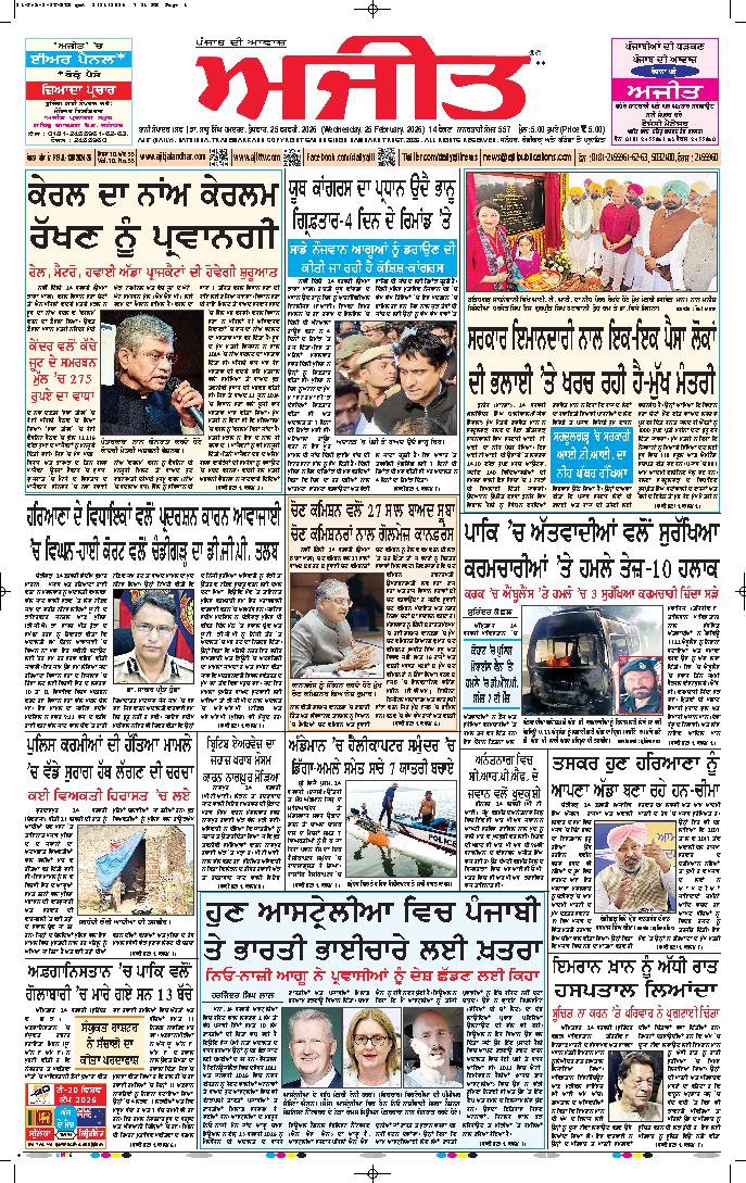 ਅਜੀਤ' ਖ਼ਬਰਾਂ, 24 ਫਰਵਰੀ 2026
