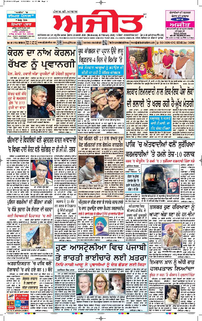 ਅਜੀਤ' ਖ਼ਬਰਾਂ, 24 ਫਰਵਰੀ 2026