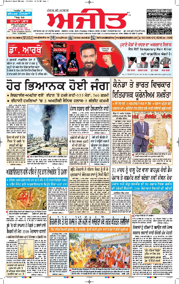 ਅਜੀਤ' ਖ਼ਬਰਾਂ, 2 ਮਾਰਚ 2026