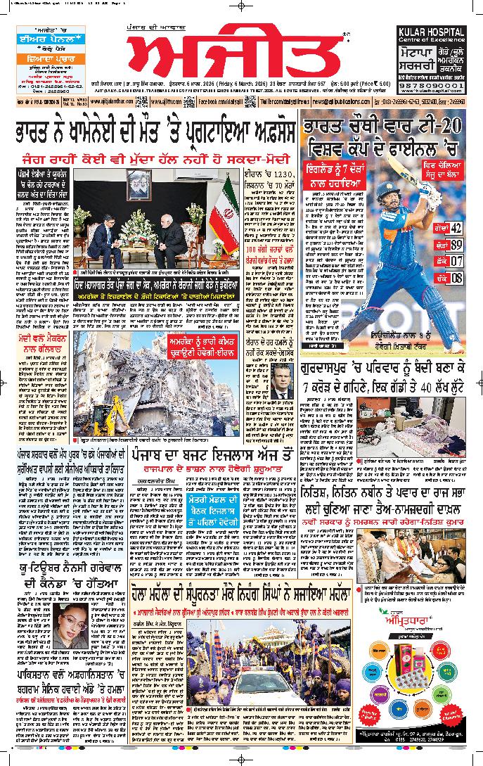 ਅਜੀਤ' ਖ਼ਬਰਾਂ, 5 ਮਾਰਚ 2026