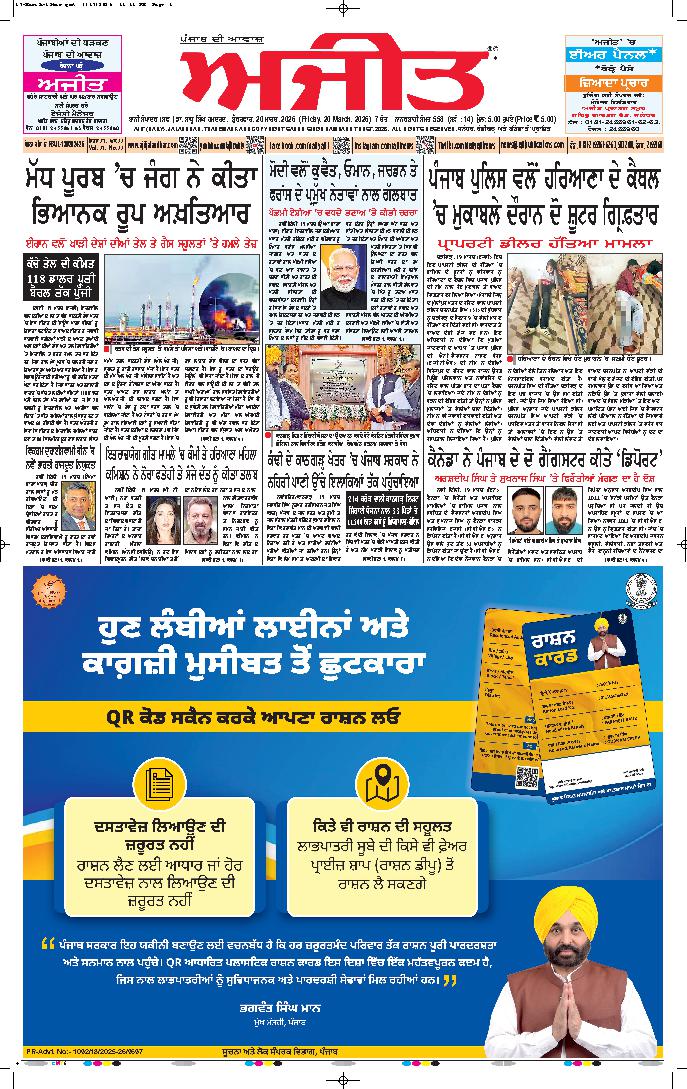 ਅਜੀਤ' ਖ਼ਬਰਾਂ, 19 ਮਾਰਚ 2026