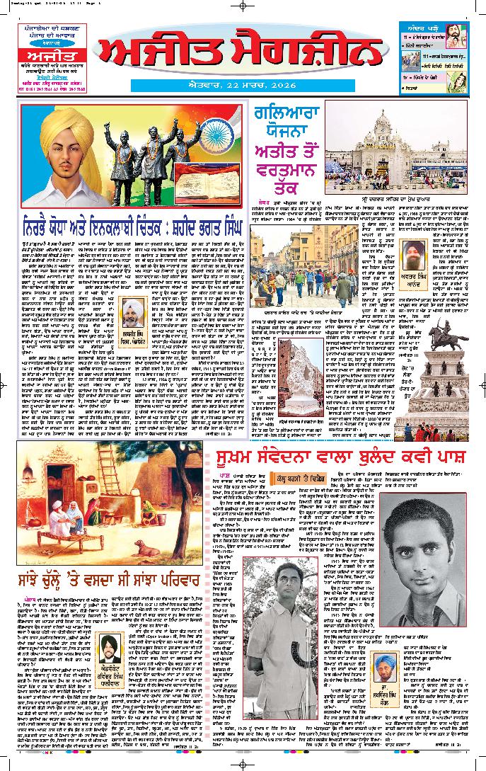 ਅਜੀਤ' ਖ਼ਬਰਾਂ, 21 ਮਾਰਚ 2026