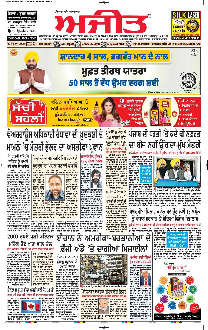 ਅਜੀਤ' ਖ਼ਬਰਾਂ, 21 ਮਾਰਚ 2026