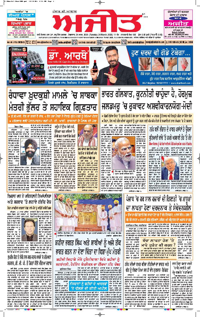 ਅਜੀਤ' ਖ਼ਬਰਾਂ, 23 ਮਾਰਚ 2026