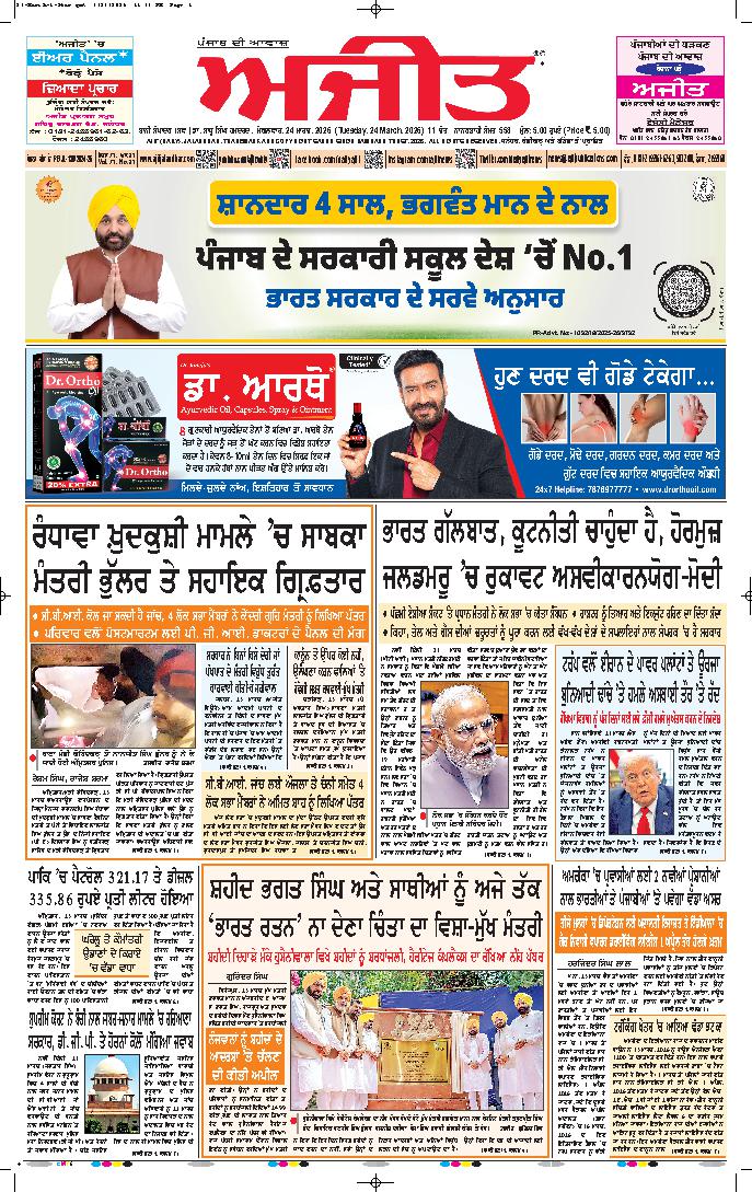 ਅਜੀਤ' ਖ਼ਬਰਾਂ, 23 ਮਾਰਚ 2026