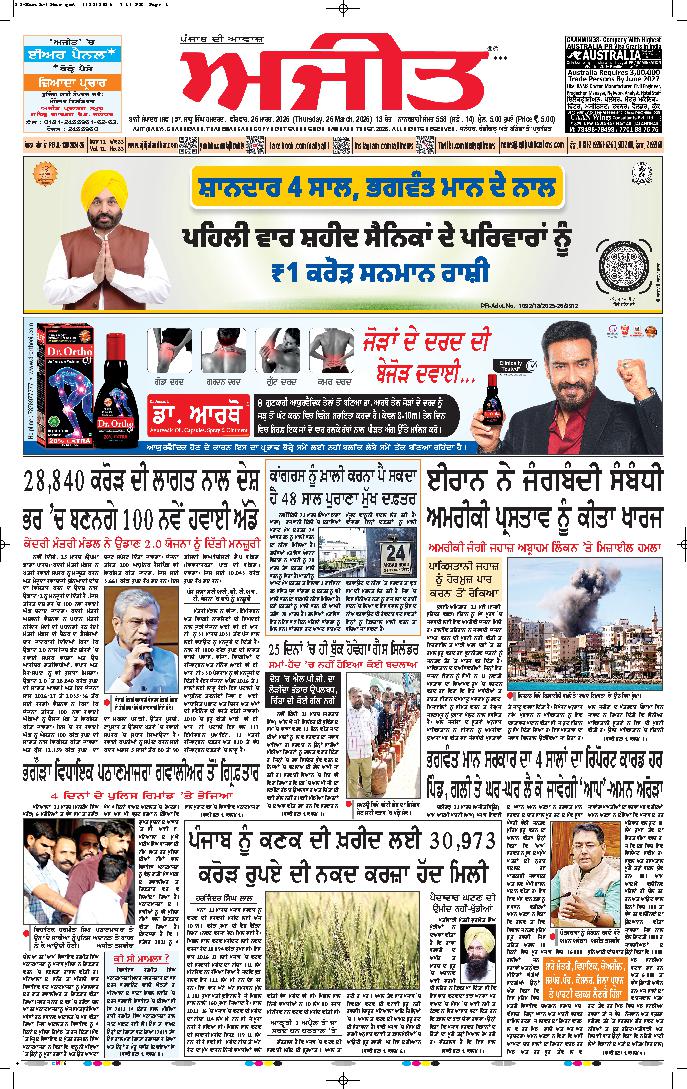 ਅਜੀਤ' ਖ਼ਬਰਾਂ, 25 ਮਾਰਚ 2026