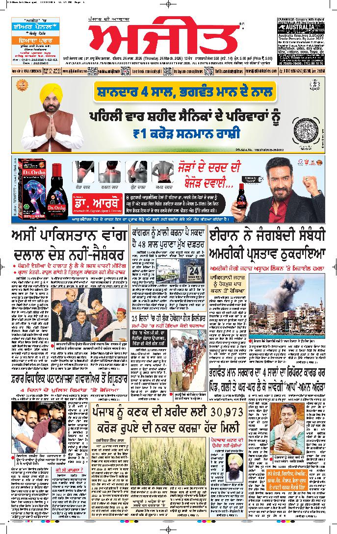 ਅਜੀਤ' ਖ਼ਬਰਾਂ, 25 ਮਾਰਚ 2026