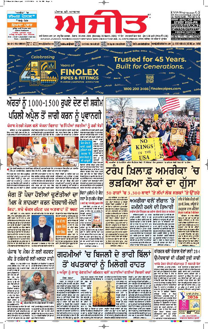 ਅਜੀਤ' ਖ਼ਬਰਾਂ, 29 ਮਾਰਚ 2026
