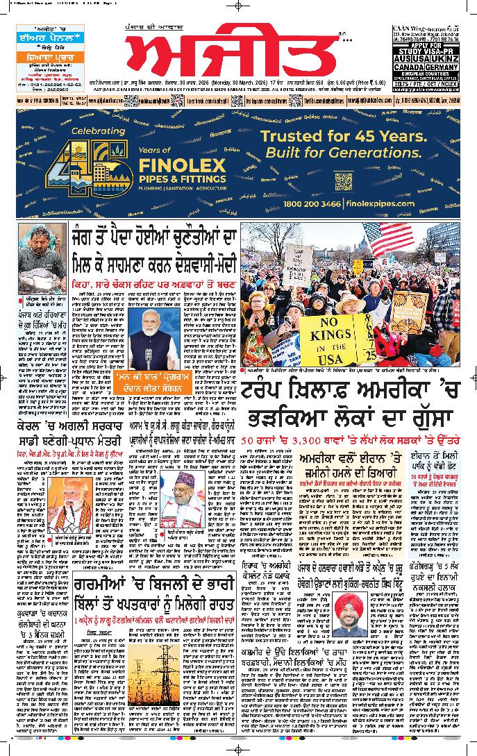 ਅਜੀਤ' ਖ਼ਬਰਾਂ, 29 ਮਾਰਚ 2026