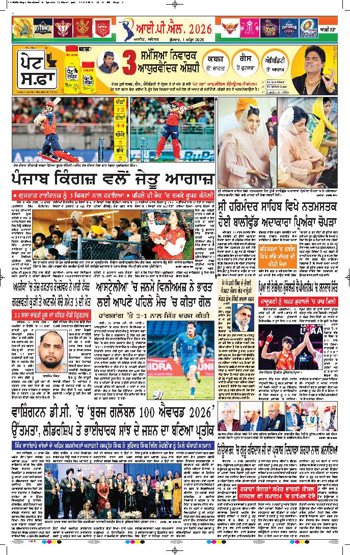 ਆਈਪੀਐਲ 2026- ਪੰਜਾਬ ਦੀ ਗੁਜਰਾਤ ’ਤੇ ਸ਼ਾਨਦਾਰ ਜਿੱਤ