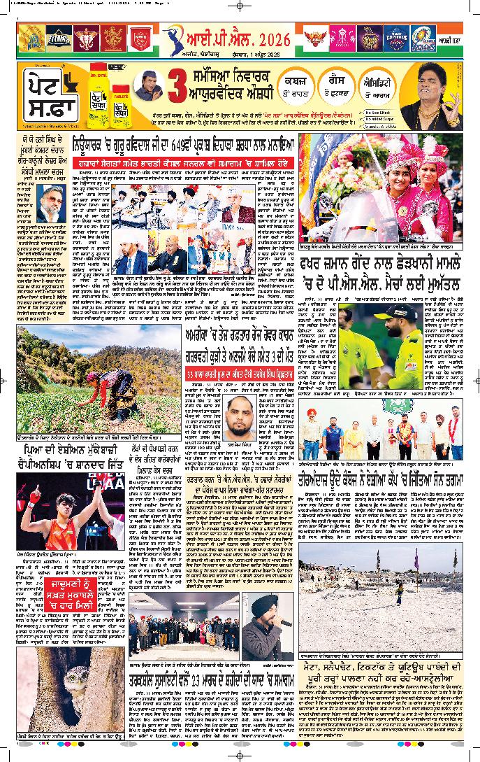 ਆਈਪੀਐਲ 2026- ਪੰਜਾਬ ਦੀ ਗੁਜਰਾਤ ’ਤੇ ਸ਼ਾਨਦਾਰ ਜਿੱਤ
