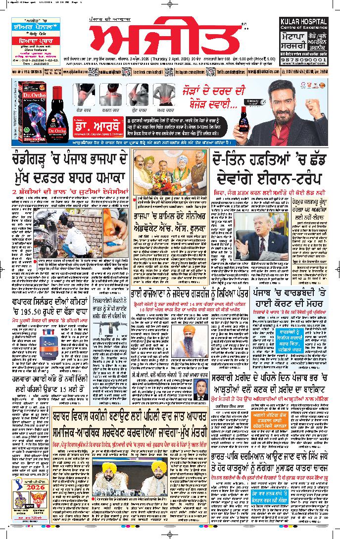 ਅਜੀਤ' ਖ਼ਬਰਾਂ, 1 ਅਪੑੈਲ 2026