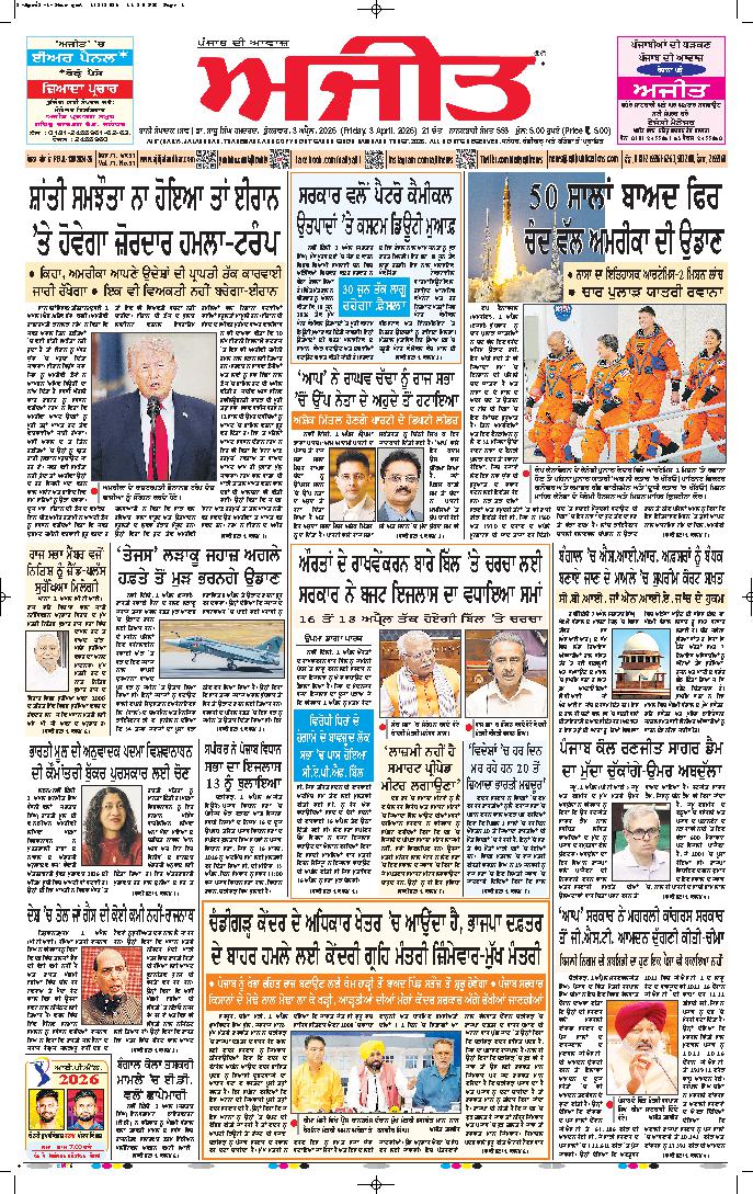 ਅਜੀਤ' ਖ਼ਬਰਾਂ, 2 ਅਪੑੈਲ 2026