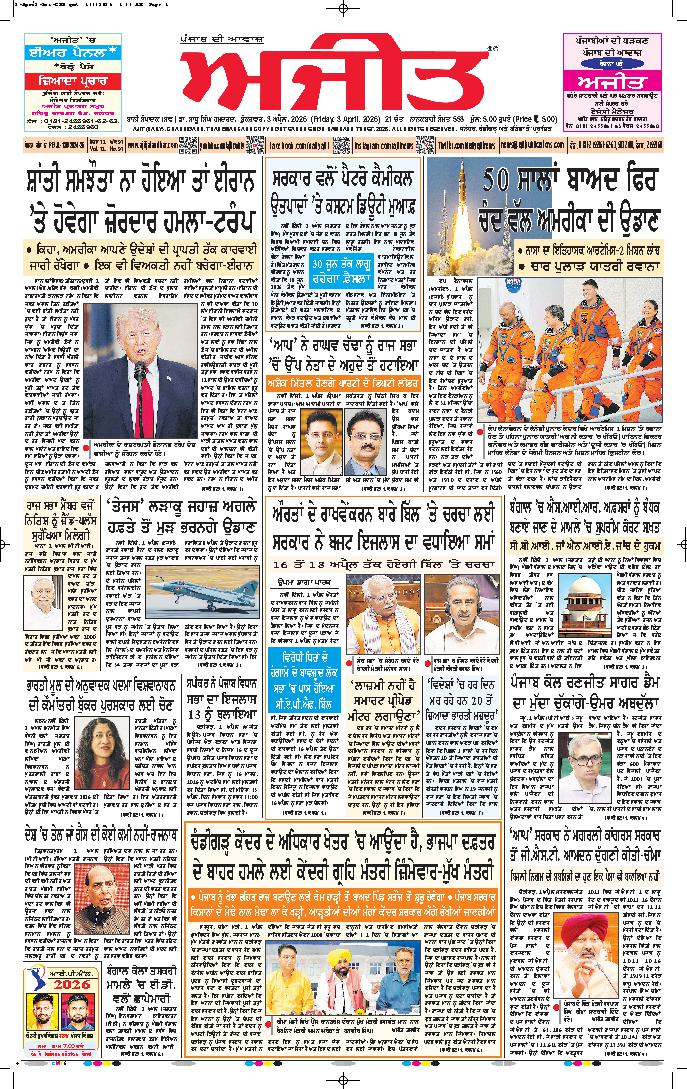 ਅਜੀਤ' ਖ਼ਬਰਾਂ, 2 ਅਪੑੈਲ 2026