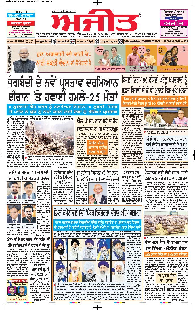 ਅਜੀਤ' ਖ਼ਬਰਾਂ, 6 ਅਪੑੈਲ 2026
