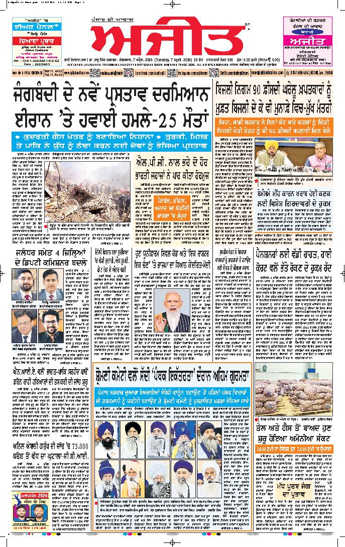 ਅਜੀਤ' ਖ਼ਬਰਾਂ, 6 ਅਪੑੈਲ 2026