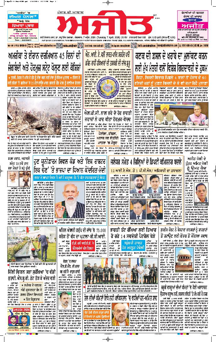 ਅਜੀਤ' ਖ਼ਬਰਾਂ, 6 ਅਪੑੈਲ 2026