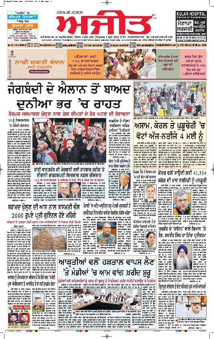 ਅਜੀਤ' ਖ਼ਬਰਾਂ, 8 ਅਪੑੈਲ 2026