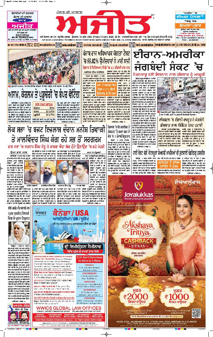 ਅਜੀਤ' ਖ਼ਬਰਾਂ, 9 ਅਪੑੈਲ 2026