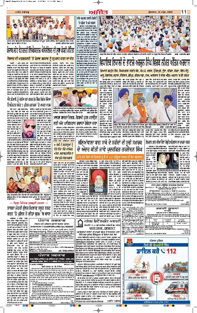 ਅੰਮ੍ਰਿਤਸਰ, 10 ਅਪ੍ਰੈਲ (ਜਸਵੰਤ ਸਿੰਘ ਜੱਸ)- ਖਾਲਸਾ ਸਾਜਨਾ ਦਿਵਸ ਵਿਸਾਖੀ ਪੁਰਬ ਗੁਰਦੁਆਰਾ ਸ੍ਰੀ ਪੰਜਾ ਸਾਹਿਬ ਹਸਨ ਅਬਦਾਲ ਵਿਖੇ ਮਨਾਉਣ ਅਤੇ ਹੋਰ ਗੁਰਧਾਮਾਂ ਦੇ ਦਰਸ਼ਨਾਂ ਲਈ....