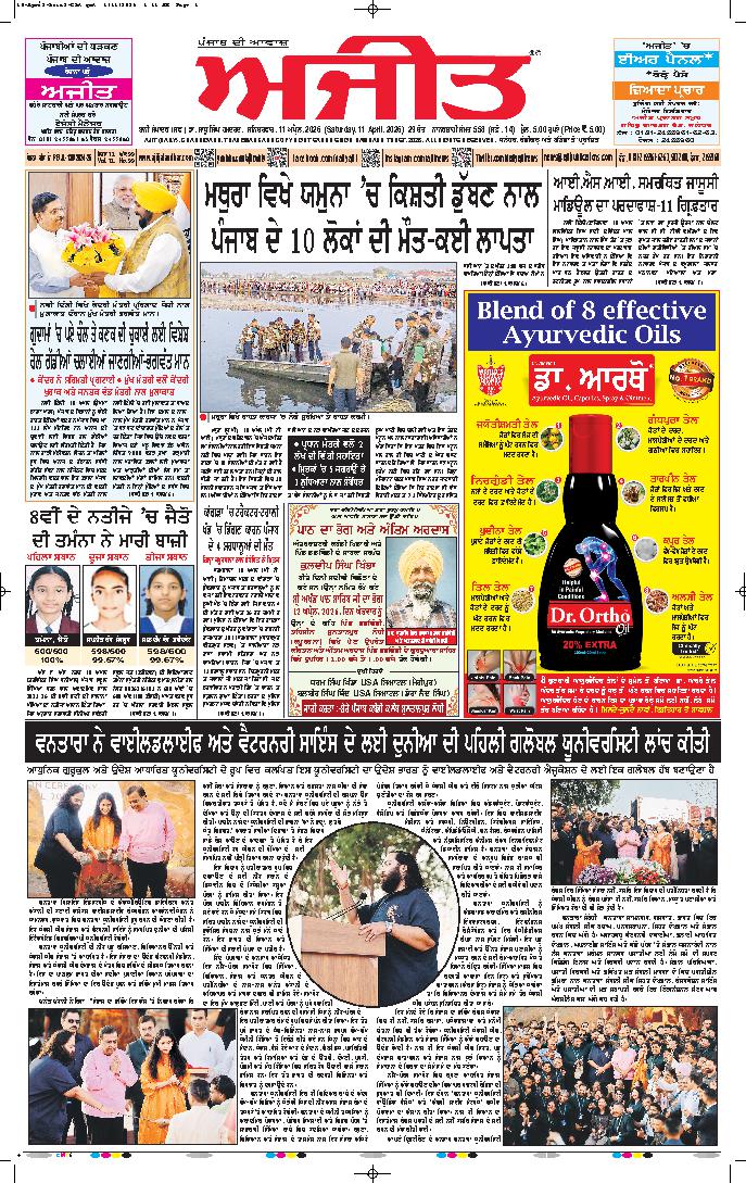 ਅਜੀਤ' ਖ਼ਬਰਾਂ, 10 ਅਪੑੈਲ 2026
