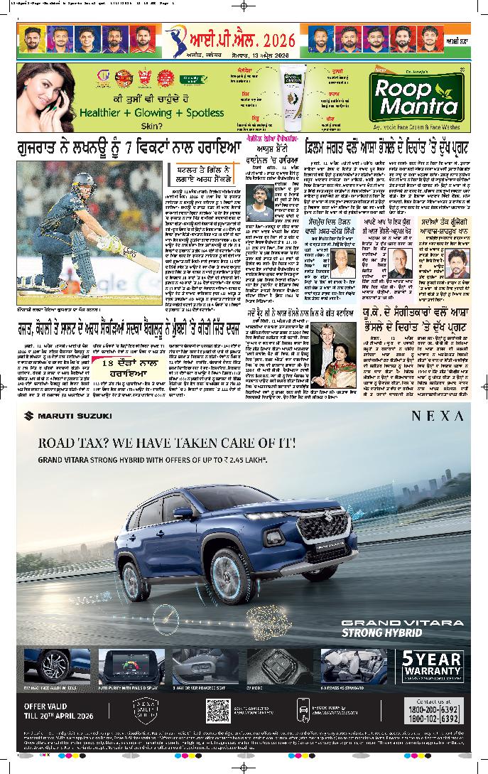 ਚੰਡੀਗੜ੍ਹ,13 ਅਪ੍ਰੈਲ -ਮੁੱਖ ਮੰਤਰੀ ਭਗਵੰਤ ਨੇ ਕਿਹਾ ਕਿ ਅੱਜ ਇਕ ਇਤਿਹਾਸਕ ਦਿਨ ਹੈ। ਇਸ ਨੂੰ ਖਾਲਸਾ ਸਿਰਜਣਾ ਦਿਵਸ ਵੀ ਕਿਹਾ ਜਾਂਦਾ ਹੈ। ਸ੍ਰੀ ਗੁਰੂ ਗ੍ਰੰਥ ਸਾਹਿਬ ਨੂੰ ਜੀਵੰਤ ਗੁਰੂ ਦਾ...