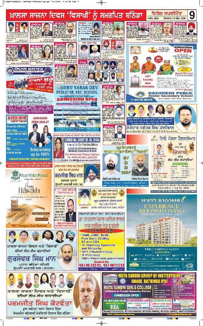 ਤਲਵੰਡੀ ਸਾਬੋ (ਬਠਿੰਡਾ), 14 ਅਪ੍ਰੈਲ (ਰਣਜੀਤ ਸਿੰਘ ਰਾਜੂ) ਖ਼ਾਲਸਾ ਸਾਜਨਾ ਦਿਵਸ ਵਿਸਾਖੀ ਮੌਕੇ ਸਿੱਖ ਕੌਮ ਦੇ ਚੌਥੇ ਤਖ਼ਤ, ਤਖ਼ਤ ਸ੍ਰੀ ਦਮਦਮਾ ਸਾਹਿਬ ਵਿਖੇ ਸਜਾਏ ਗਏ ਜੋੜ ਮੇਲ ਦੌਰਾਨ...