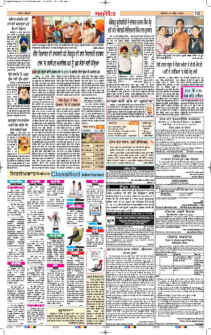 ਜਲੰਧਰ , 15 (ਗੌਰਵ)- ਕੇਂਦਰੀ ਸੈਕੰਡਰੀ ਸਿੱਖਿਆ ਬੋਰਡ ਵੱਲੋਂ ਬੁੱਧਵਾਰ ਨੂੰ ਐਲਾਨੇ ਗਏ ਦਸਵੀਂ ਜਮਾਤ ਦੇ ਨਤੀਜਿਆਂ ਵਿਚ ਜਲੰਧਰ ਦੇ ਵਿਦਿਆਰਥੀਆਂ ਨੇ ਦੇਸ਼ ਭਰ ਵਿਚ ਜ਼ਿਲ੍ਹੇ ਦਾ ਨਾਂਅ ਸੁਨਹਿਰੀ ਅੱਖਰਾਂ ਵਿਚ ਲਿਖ ...