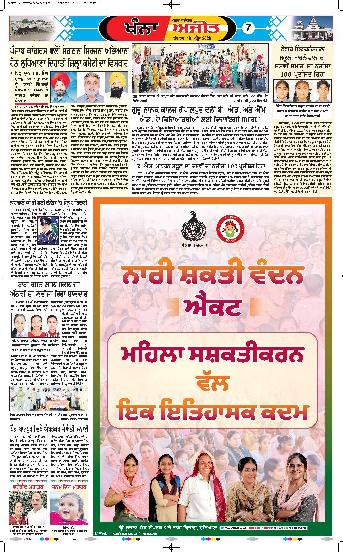 ਜਲੰਧਰ , 15 (ਗੌਰਵ)- ਕੇਂਦਰੀ ਸੈਕੰਡਰੀ ਸਿੱਖਿਆ ਬੋਰਡ ਵੱਲੋਂ ਬੁੱਧਵਾਰ ਨੂੰ ਐਲਾਨੇ ਗਏ ਦਸਵੀਂ ਜਮਾਤ ਦੇ ਨਤੀਜਿਆਂ ਵਿਚ ਜਲੰਧਰ ਦੇ ਵਿਦਿਆਰਥੀਆਂ ਨੇ ਦੇਸ਼ ਭਰ ਵਿਚ ਜ਼ਿਲ੍ਹੇ ਦਾ ਨਾਂਅ ਸੁਨਹਿਰੀ ਅੱਖਰਾਂ ਵਿਚ ਲਿਖ ...