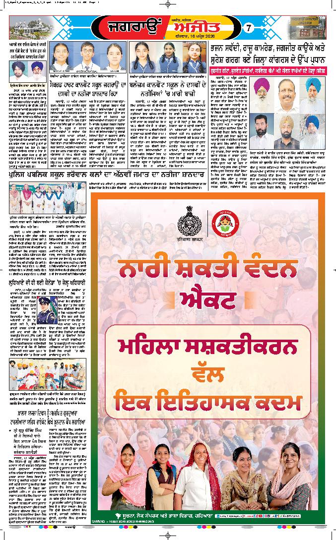 ਜਲੰਧਰ , 15 (ਗੌਰਵ)- ਕੇਂਦਰੀ ਸੈਕੰਡਰੀ ਸਿੱਖਿਆ ਬੋਰਡ ਵੱਲੋਂ ਬੁੱਧਵਾਰ ਨੂੰ ਐਲਾਨੇ ਗਏ ਦਸਵੀਂ ਜਮਾਤ ਦੇ ਨਤੀਜਿਆਂ ਵਿਚ ਜਲੰਧਰ ਦੇ ਵਿਦਿਆਰਥੀਆਂ ਨੇ ਦੇਸ਼ ਭਰ ਵਿਚ ਜ਼ਿਲ੍ਹੇ ਦਾ ਨਾਂਅ ਸੁਨਹਿਰੀ ਅੱਖਰਾਂ ਵਿਚ ਲਿਖ ...