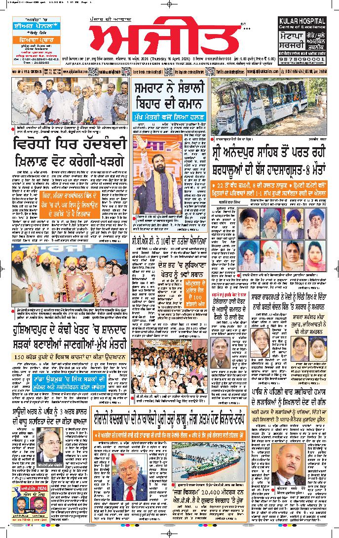 ਅਜੀਤ' ਖ਼ਬਰਾਂ, 14 ਅਪੑੈਲ 2026