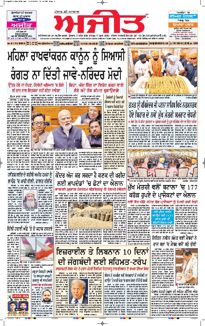 ਅਜੀਤ' ਖ਼ਬਰਾਂ, 16 ਅਪੑੈਲ 2026