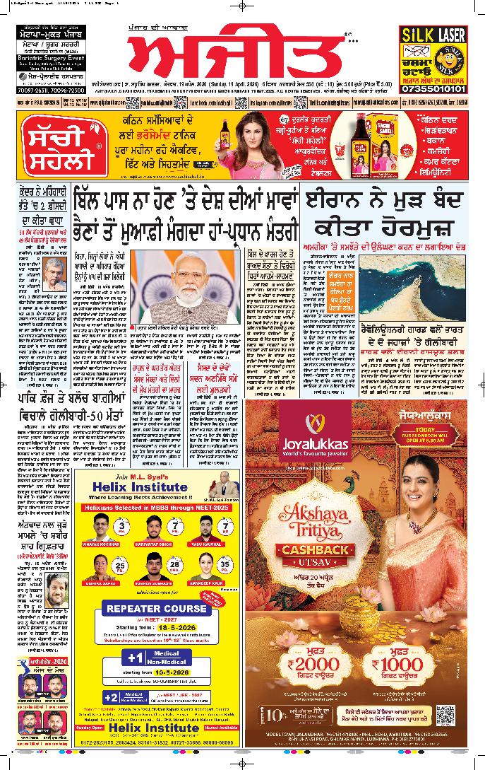 ਅਜੀਤ' ਖ਼ਬਰਾਂ, 18 ਅਪੑੈਲ 2026