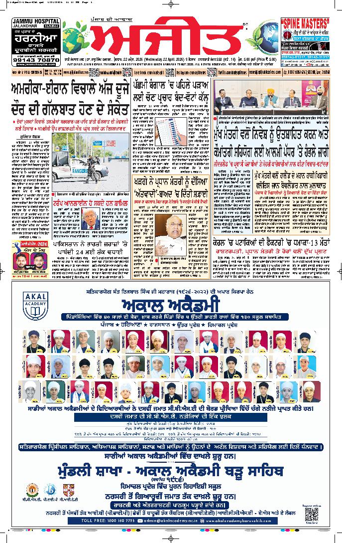 ਅਜੀਤ' ਖ਼ਬਰਾਂ, 21 ਅਪੑੈਲ 2026