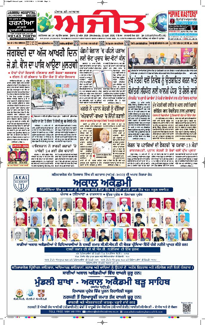 ਅਜੀਤ' ਖ਼ਬਰਾਂ, 21 ਅਪੑੈਲ 2026