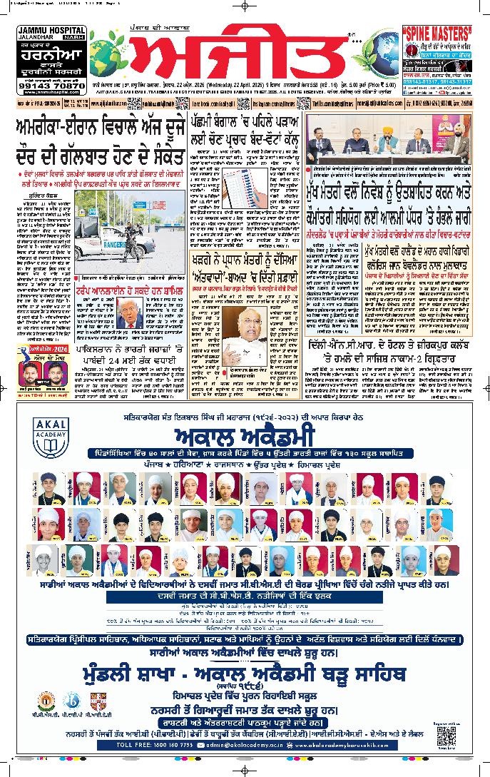 ਅਜੀਤ' ਖ਼ਬਰਾਂ, 21 ਅਪੑੈਲ 2026
