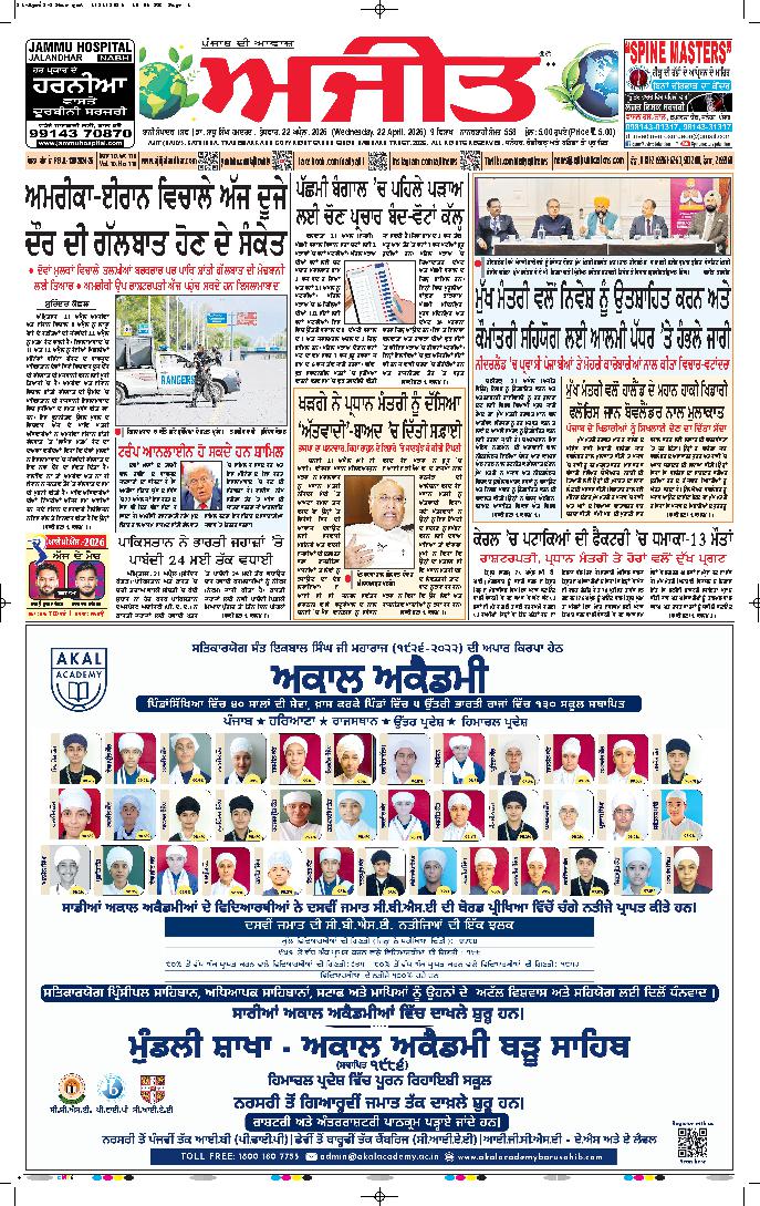 ਅਜੀਤ' ਖ਼ਬਰਾਂ, 21 ਅਪੑੈਲ 2026