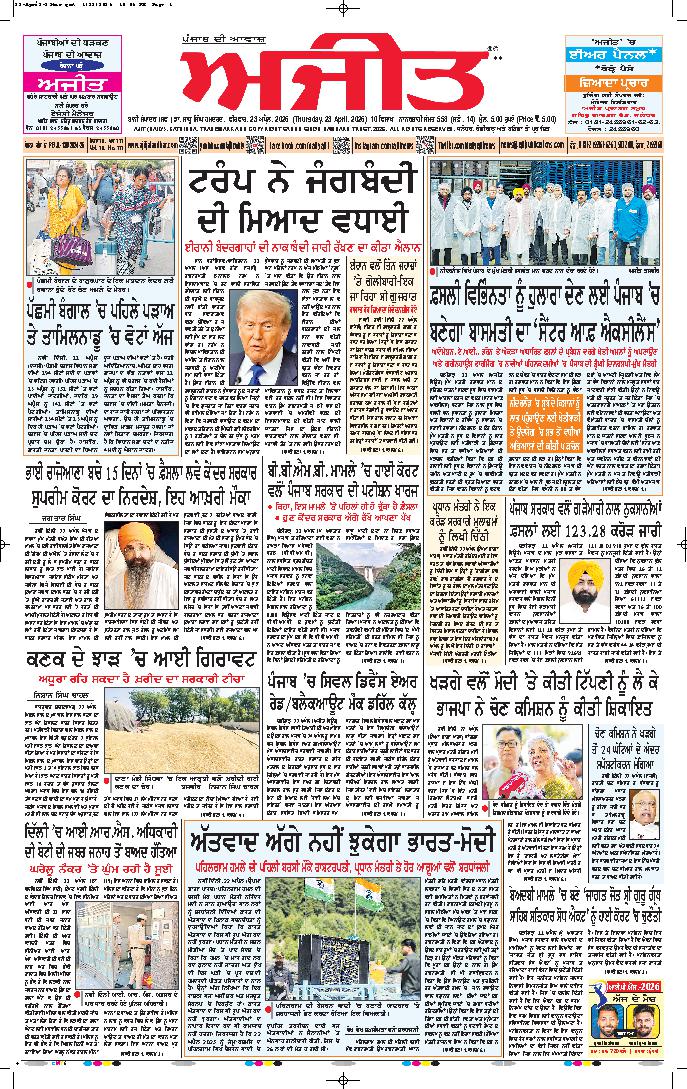 ਅਜੀਤ' ਖ਼ਬਰਾਂ, 22 ਅਪੑੈਲ 2026