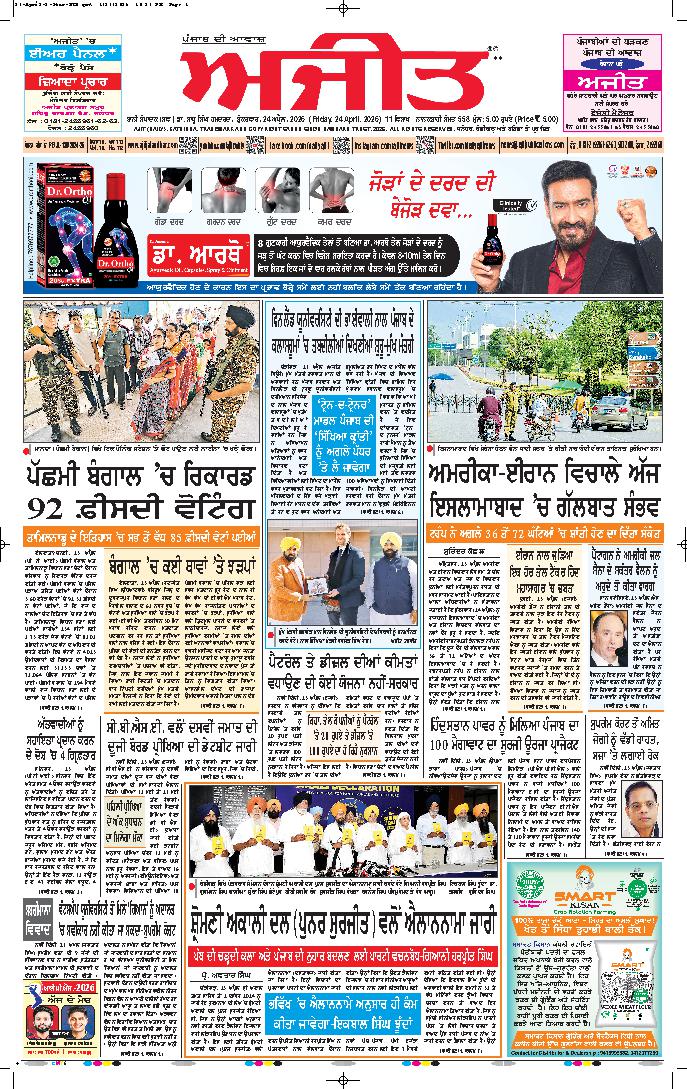 ਅਜੀਤ' ਖ਼ਬਰਾਂ, 23 ਅਪੑੈਲ 2026