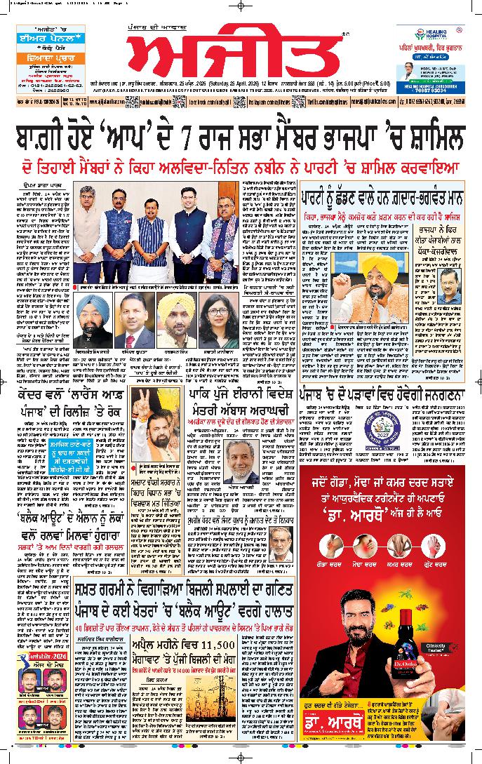 ਅਜੀਤ' ਖ਼ਬਰਾਂ, 24 ਅਪੑੈਲ 2026