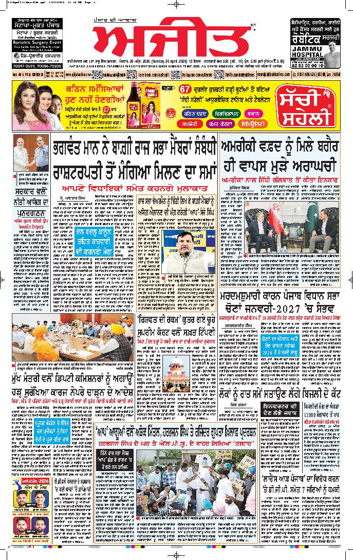 ਅਜੀਤ' ਖ਼ਬਰਾਂ, 25 ਅਪੑੈਲ 2026