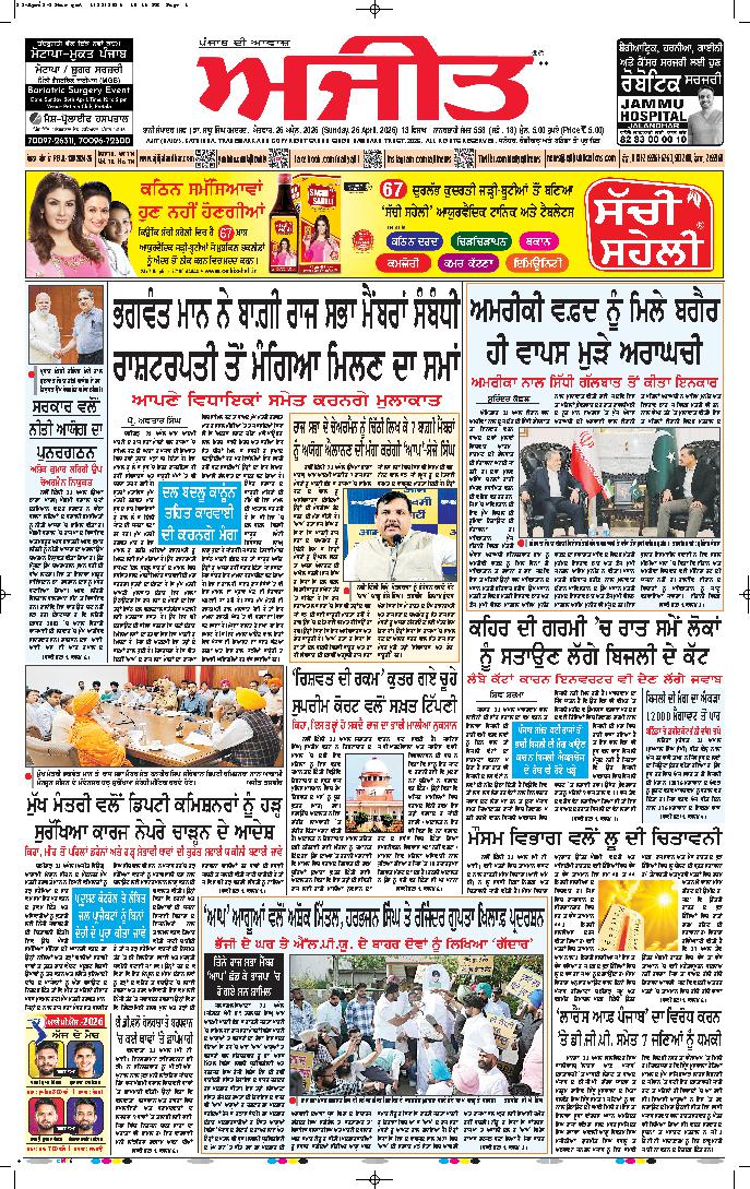ਅਜੀਤ' ਖ਼ਬਰਾਂ, 25 ਅਪੑੈਲ 2026