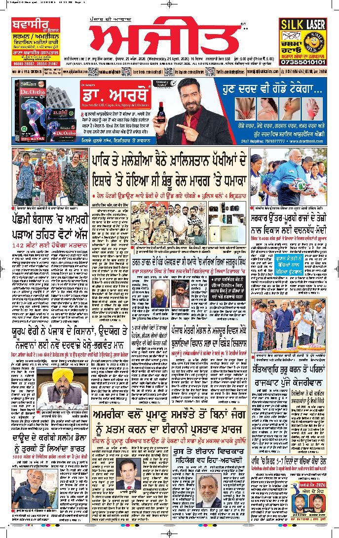 ਅਜੀਤ' ਖ਼ਬਰਾਂ, 28 ਅਪੑੈਲ 2026
