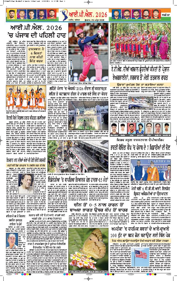 ਆਈ ਪੀ ਐੱਲ 2026- ਰਾਜਸਥਾਨ ਰਾਇਲਜ਼ ਨੇ ਪੰਜਾਬ ਕਿੰਗਜ਼ ਨੂੰ 6 ਵਿਕਟਾਂ ਨਾਲ ਹਰਾਇਆ